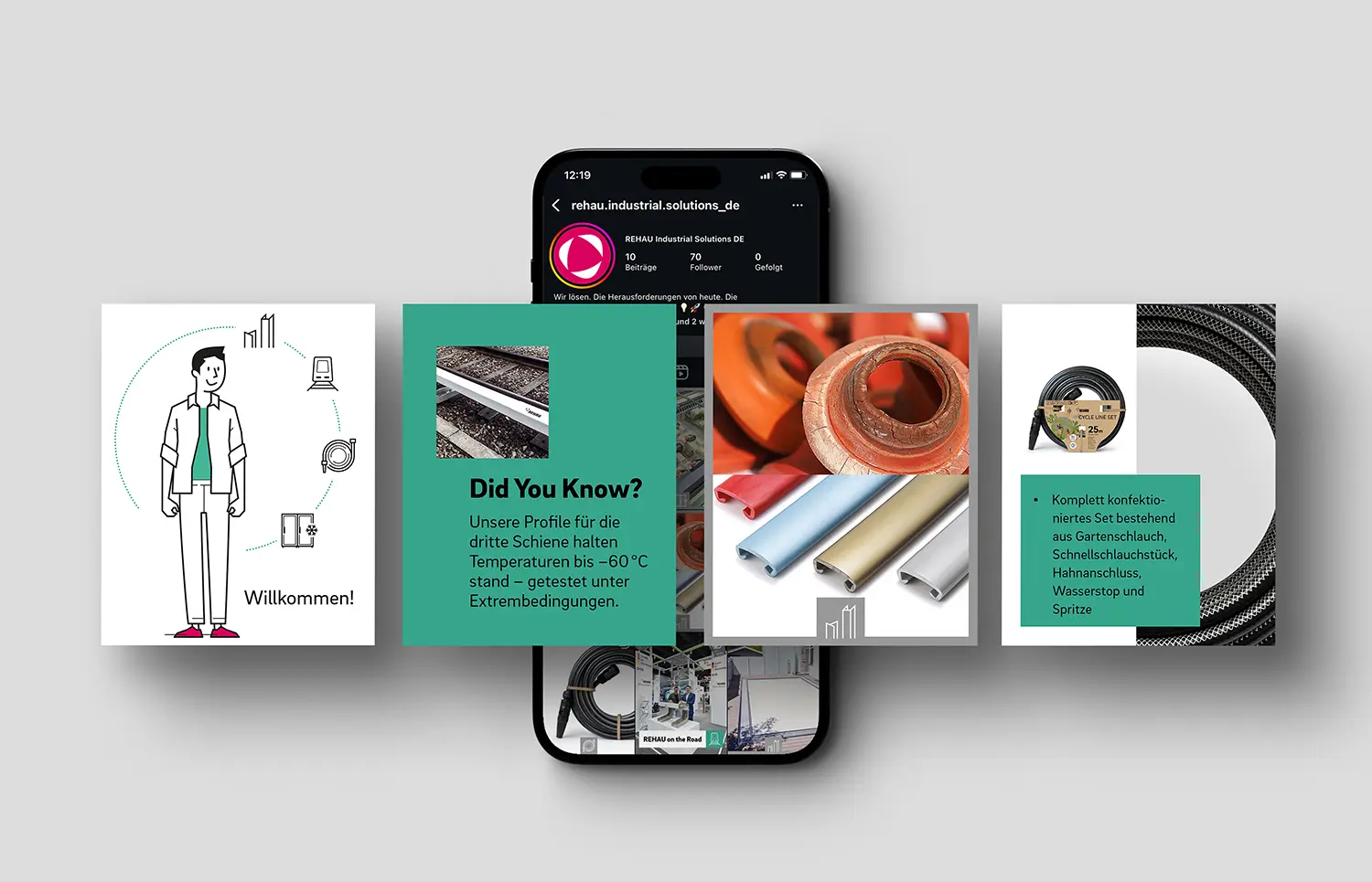 Während LinkedIn vor allem auf fachliche Tiefe und den B2B-Dialog setzt, nutzt REHAU Industrial Solutions Instagram eher als visuell geprägte Plattform für Einblicke ins Unternehmen, das Produktportfolio und Employer Branding.